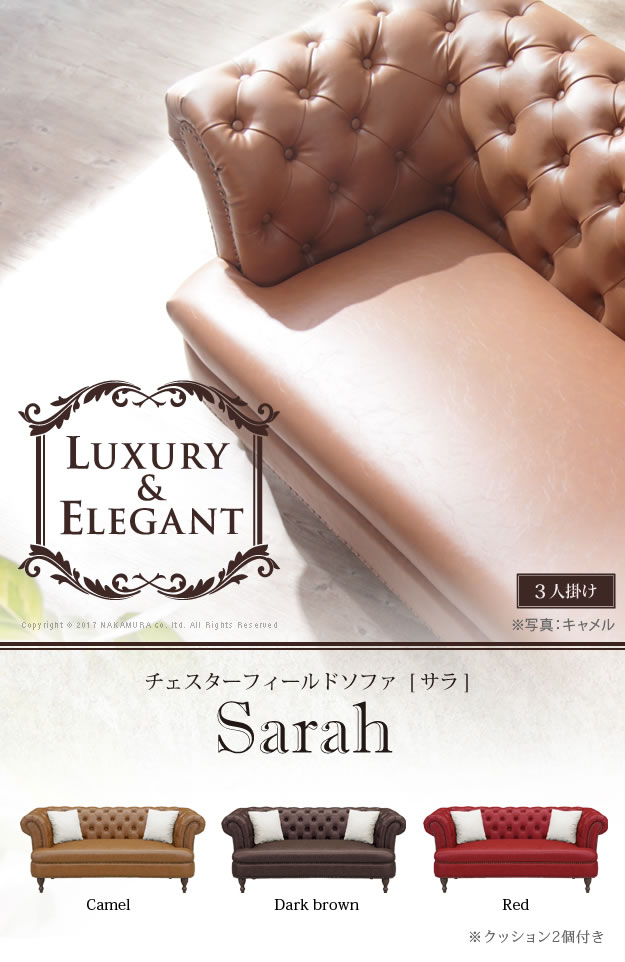 代引き代引き不可備考【梱包サイズ】幅約172cm×奥行約86cm×高さ約58cm【商品重量】約34kg※クッション2個付き※脚部のみ取り付けていただく商品です 【3人掛】Sarah 英国風ソファ