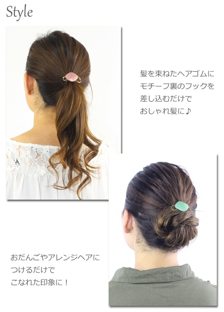 【メール便送料140円】ポニーフック/大きめ マーブル ひし形 石 ゴールドリング pn113☆ピンク/緑/ベージュ/黒 四角 スクウェア ヘアカフ ヘアカフス ヘアアクセサリー 髪飾り ヘアゴム ヘアピン ヘアアレンジ【あす楽対応】