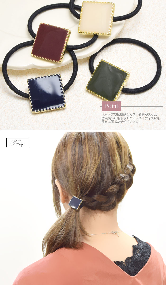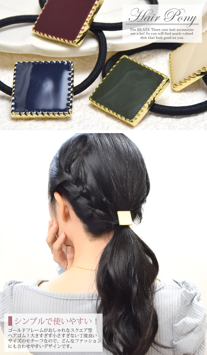 【アクセサリービュッフェチケット1000対象】スクエア ヘアゴム シンプル シックカラー BLAZE ヘアアクセサリー