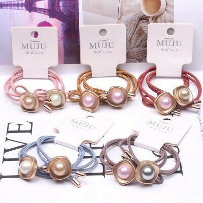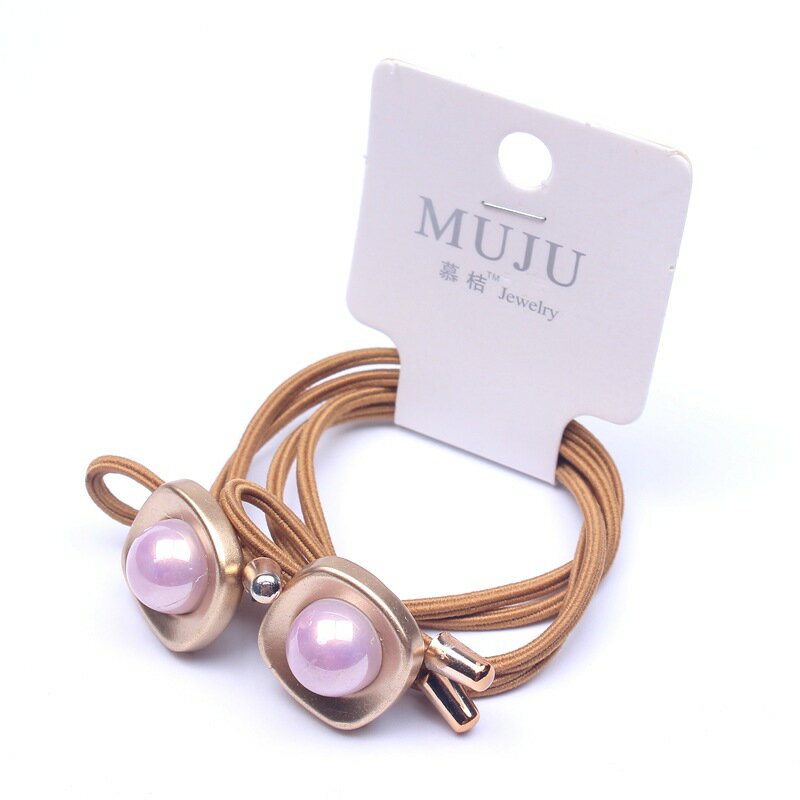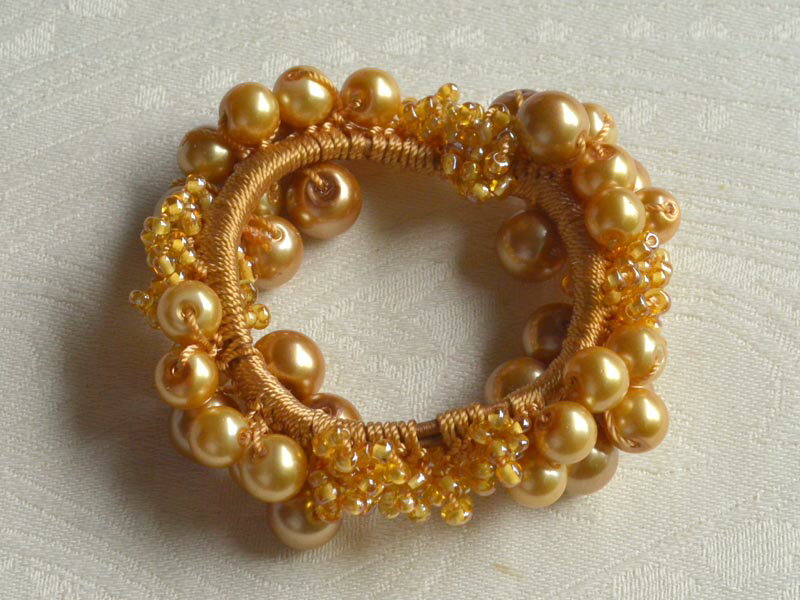 ビーズウイズゴールドプレート2連結びヘアゴム2本セット