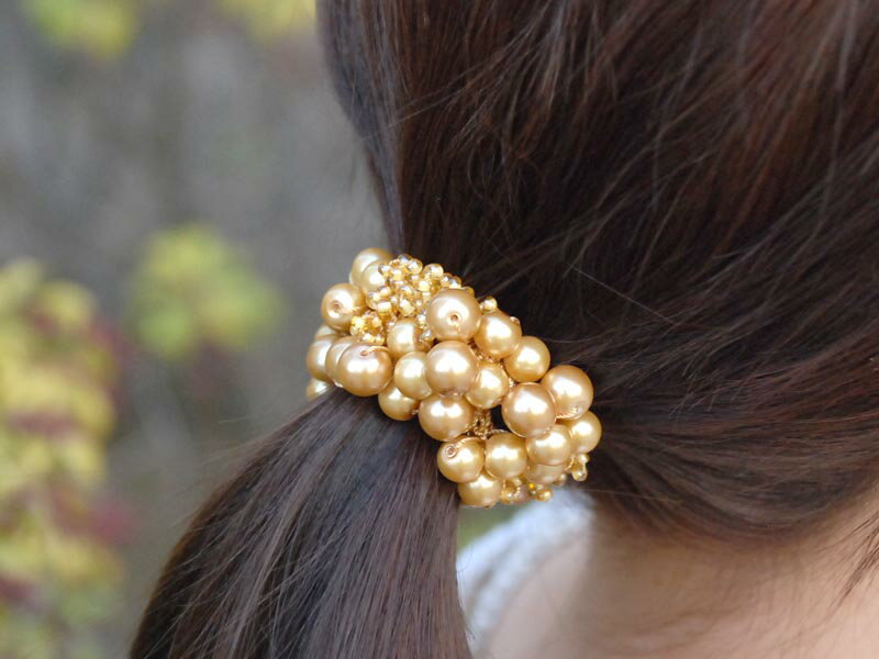 ヘアアクセサリー シュシュ ヘアゴム アクリル パール ビーズ ゴールド ベージュ 天然石 ユキコ オオクラ ブランド おしゃれ ジュエリー アクセサリー 女性 ギフト プレゼント にも