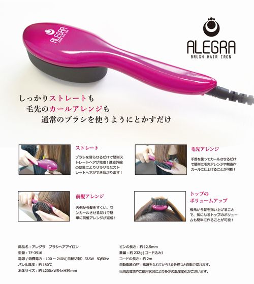 【先着クーポン配布中】アレグラ ミニブラシ ヘアアイロン TF-3916 アレグラ ブラシ型アイロン 新商品 熱ダメージ減 【送料無料/沖縄・離島除く】