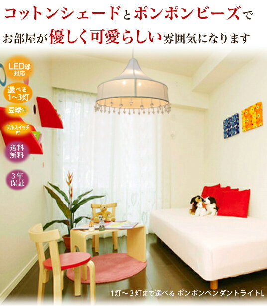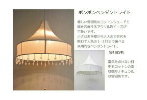 ポンポンペンダントライト 優しい雰囲気のコットンシェードと 縁を装飾するアクリル製ビーズが 可愛いです。
