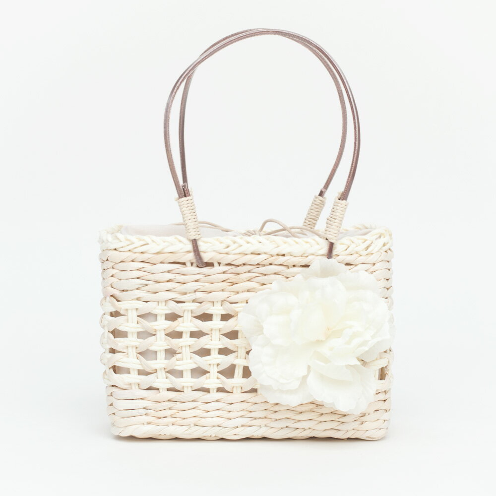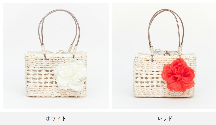 かごバッグ 浴衣 白 巾着 チャーム付き レディース BOTAN ボタン 【yukata_d19】【 木製 籠バッグ カゴバッグ かご巾着 赤 手提げ 手さげ 鞄 かばん カバン 横型 小さめ 小ぶり 女性用 婦人用 浴衣用 小物 和装 お祭り 花火 夏 2019 】