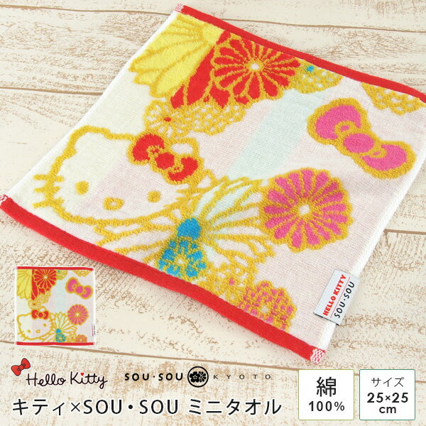 ハローキティ SOU・SOU 今治 ミニタオル ハンカチ ハンドタオル 25×25cm ウォッシュタオル タオル 綿100% 日本製 今治タオル 贈り物 タオルギフト 記念品 出産祝い キャラクター カジュアル 和柄 かわいい サンリオ Sanrio Hello Kitty キティ 【メール便可】